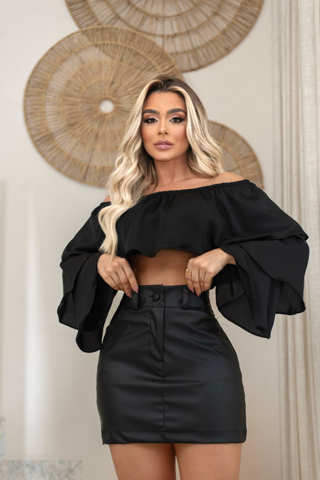 A Saia Courino é a escolha perfeita para quem busca uma peça versátil e cheia de personalidade. Confeccionada em material de alta qualidade, ela oferece um acabamento elegante que imita o couro, garantindo um visual moderno e sofisticado.